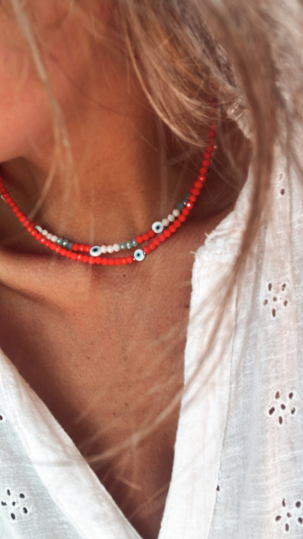 Collar con dije de ojito turco y pelotitas de vidrio facetado!