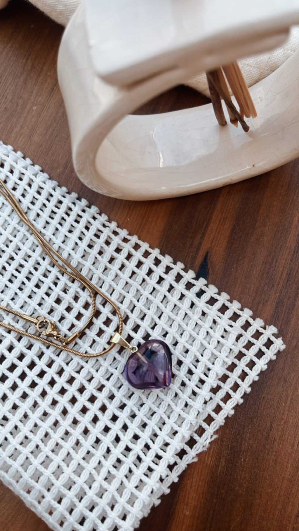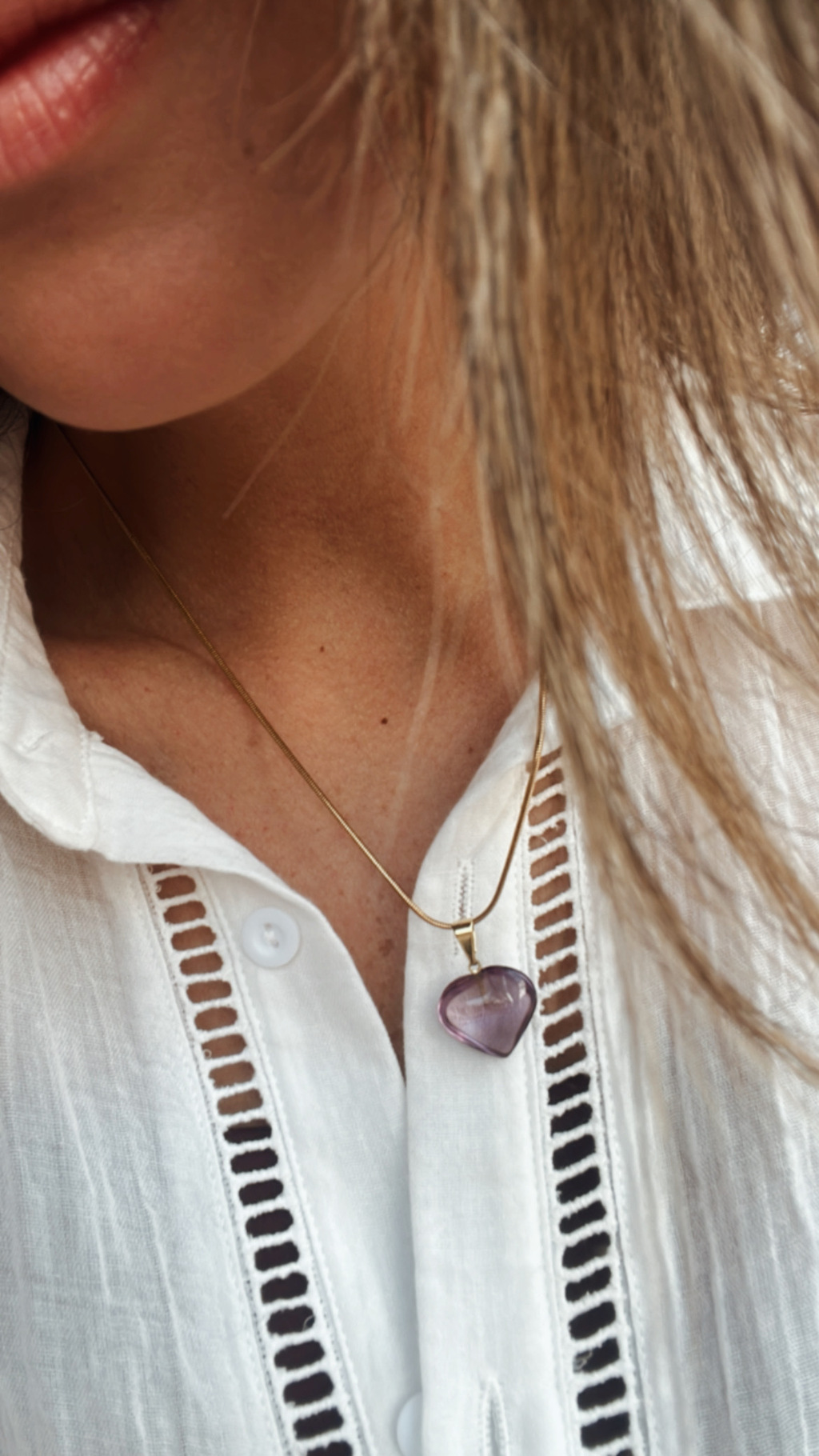Cadena de acero dorada con dije de piedra en forma de corazón - Lo amamos!