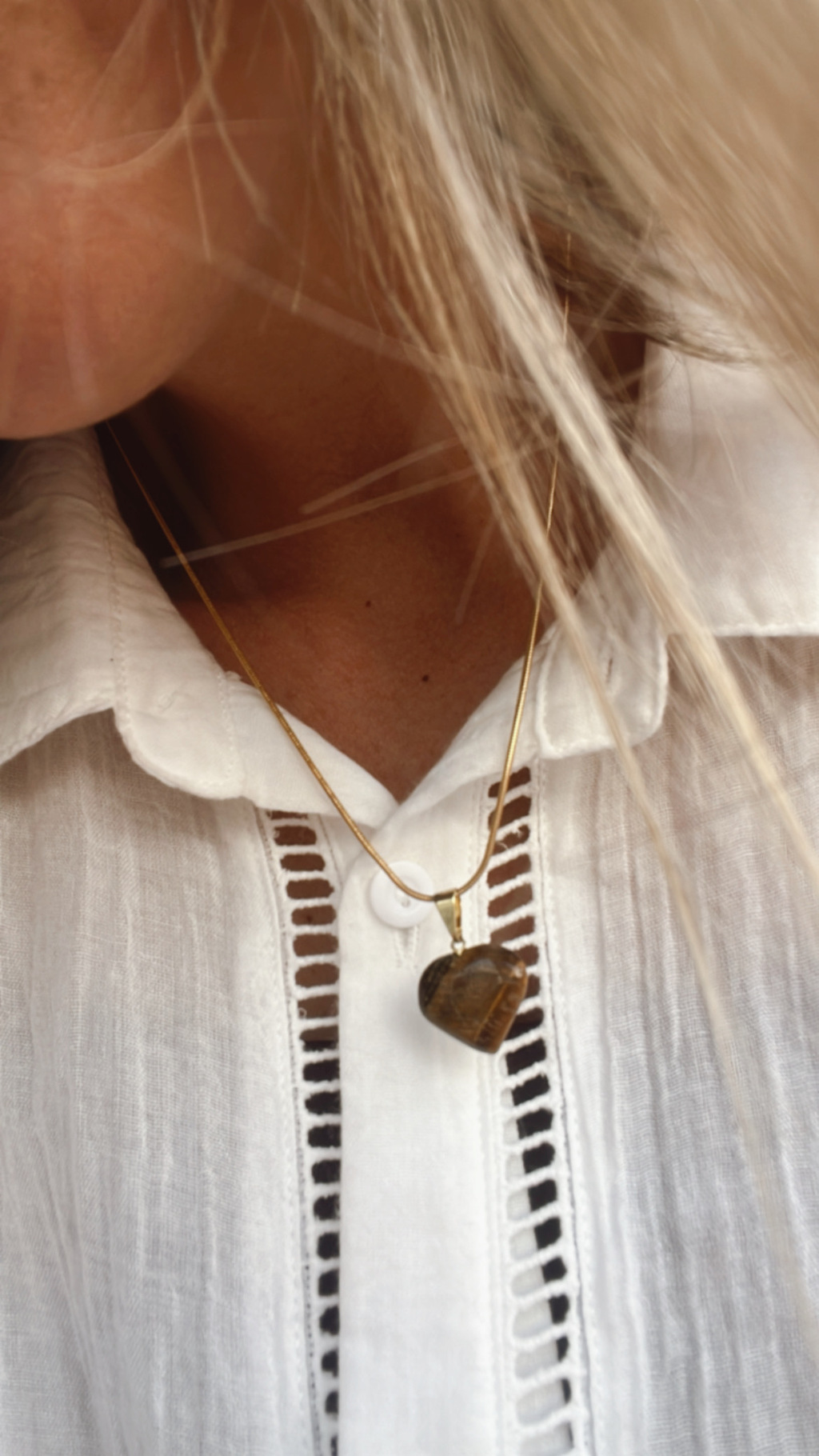 Cadena de acero dorada con dije de piedra en forma de corazón - Lo amamos!